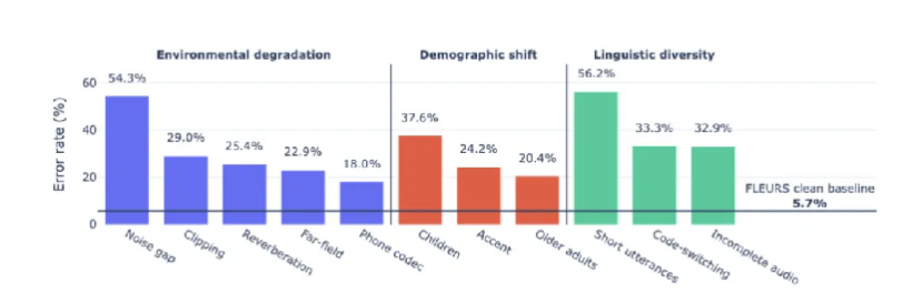 Recent work, including the WildASR benchmark, highlights a fundamental limitation in how ASR is evaluated today: most benchmarks rely on in-domain data and average error rates, which fail to capture how systems behave under real-world distribution shifts.
