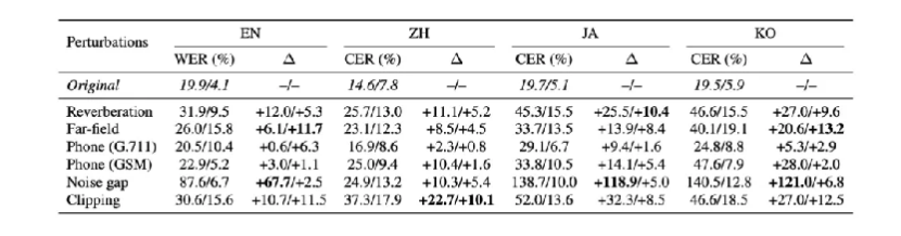Table 2. Impact of environmental degradation on multilingual ASR performance